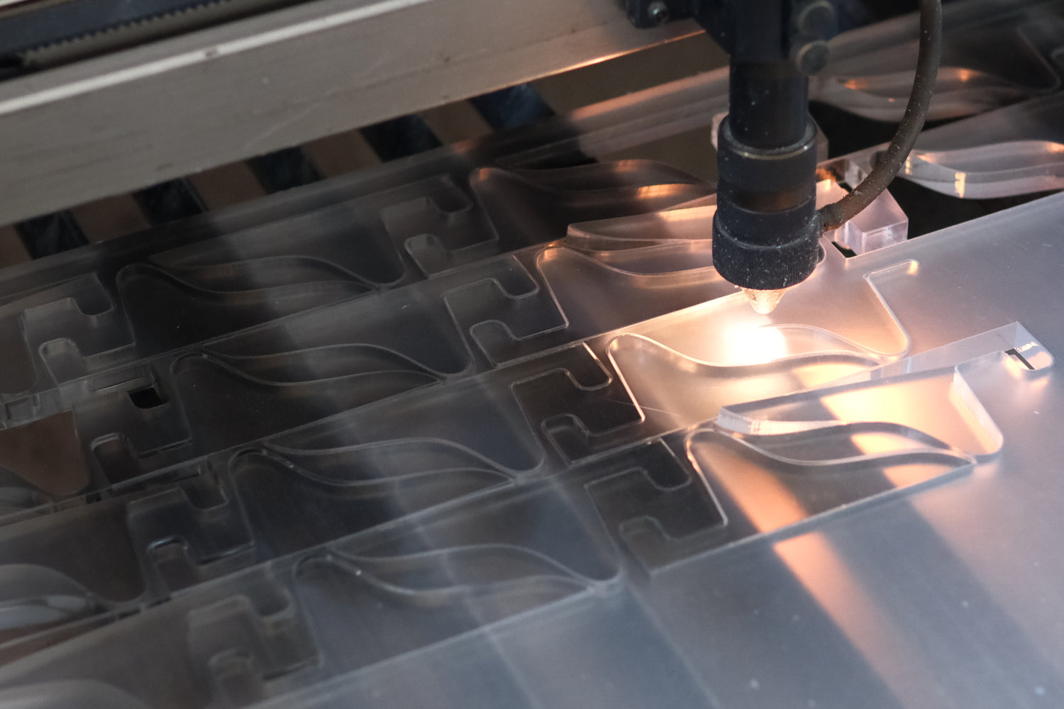 We use CNC laser cutting with pre-set program data to precisely cut each product. This ensures the acrylic edges remain clear and smooth, maintaining transparency and flatness. CNC laser cutting guarantees top quality in both appearance and functionality, providing a solid base for the next assembly steps.